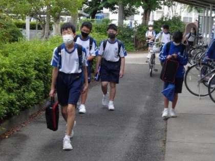 半袖、ハーフパンツ姿で登校する生徒の姿が多いです。