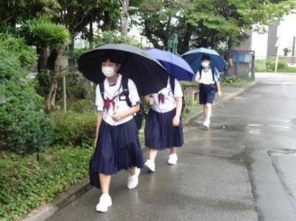 去年の今頃はたいへんな大雨でした 〜今日の登校風景1〜