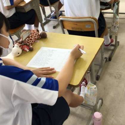 3年生は、朝学習で社会科のプリントに取り組んでいました。