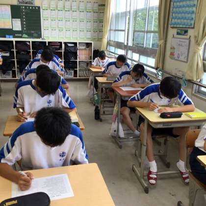 エアコンが効いた教室で、外の雨音も気にせず、集中していました。