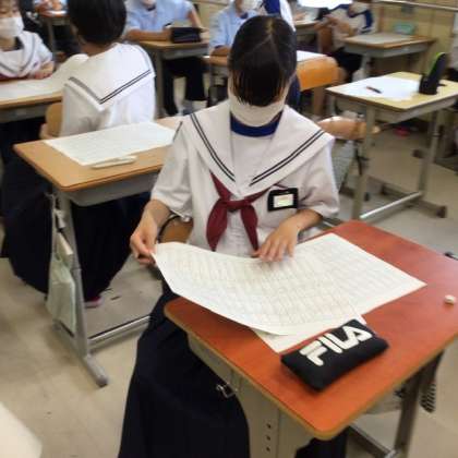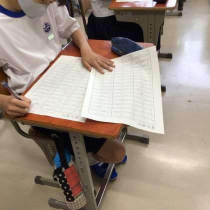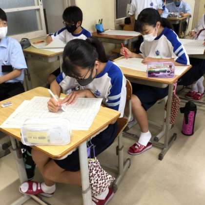 今朝の上中タイムでは、1年生は漢字の朝学習に取り組んでいました。