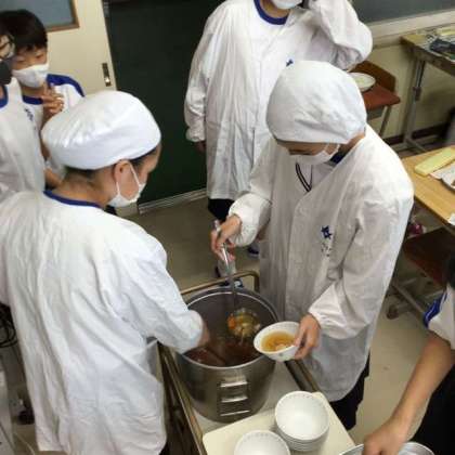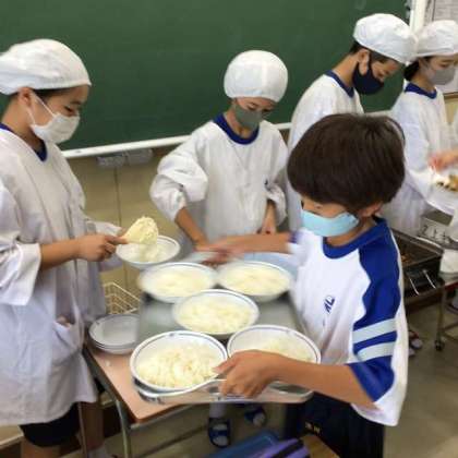 いつも、給食を並べた写真を掲載するのですが、今日は手ブレがひどくて、きれいに映っていませんでした。