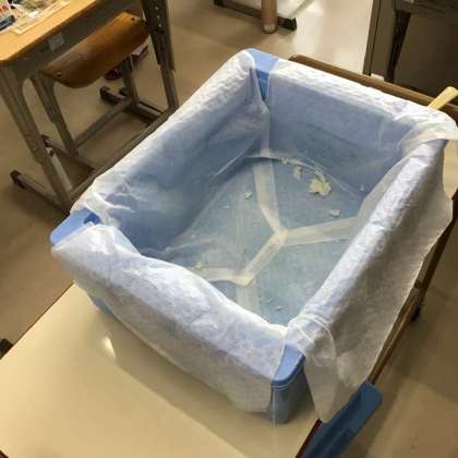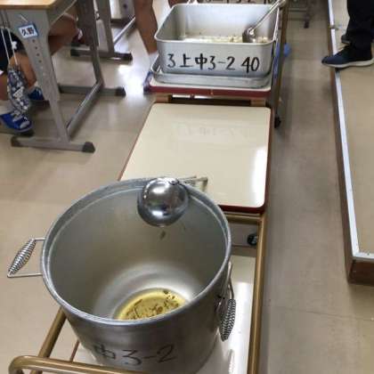 この後、減らす生徒が前に出て、その後、増やしたい生徒が前に出て、また、同じように空っぽの容器が配膳台に残りました。