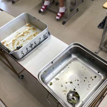 給食当番の見事な仕事によって、すべての容器が空(から)になっています。