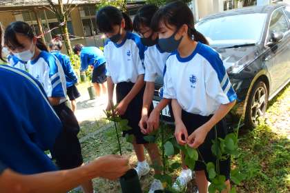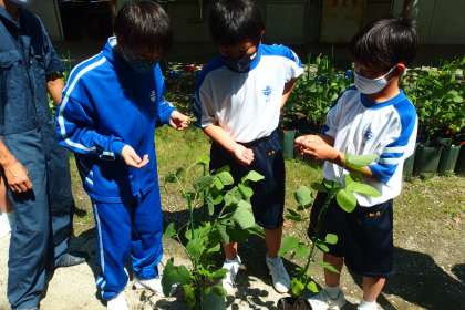 栽培している枝豆の選定と土寄せをしていました。