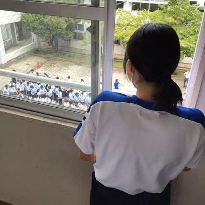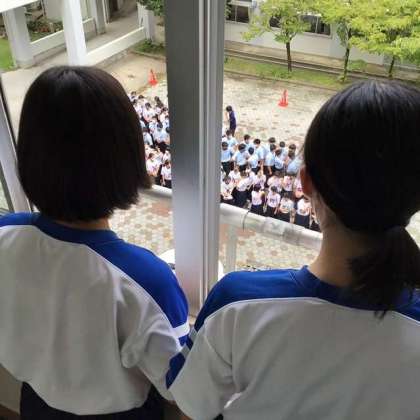 撮影は、校舎3階の廊下にカメラを設置して行いました。