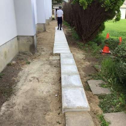本校弓道場の矢取り道は、体育館の陰になり、雨が降ると広く水が溜まってしまい、なかなか乾きませんでした。