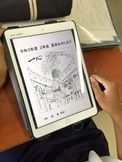 明日から生徒は学習用タブレットを、各家庭で使用します。