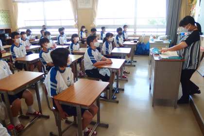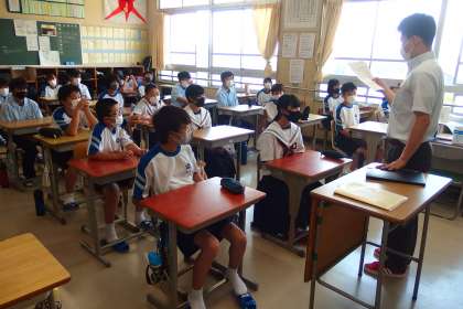 夏休み前最後の登校日、1年生の朝の会です。