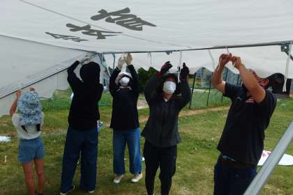 回収場所にテントの設営をしてくれました。
