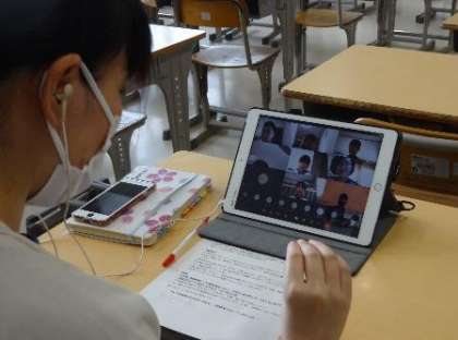 写真は、25日(水)に出校日の代わりに行ったオンライン朝の会の様子です。