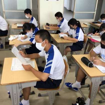 登校して手洗いを終えると、生徒たちは早速、テスト勉強を進めていました。