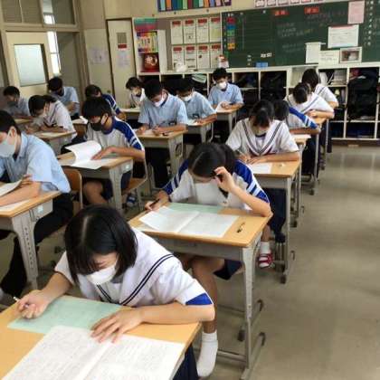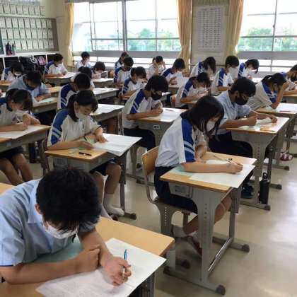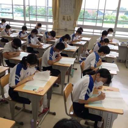 写真は1時間目の国語のテスト風景です。