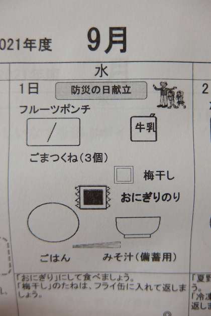 9月1日は防災の日献立です。