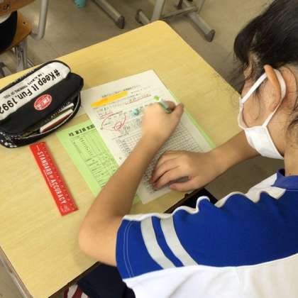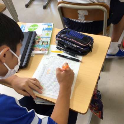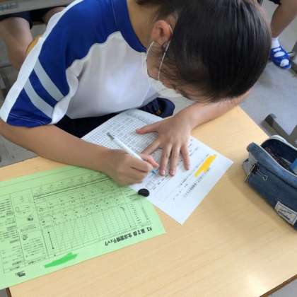 学習計画表を記入している生徒の姿です。