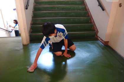 集中して清掃している3年生。