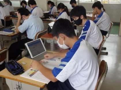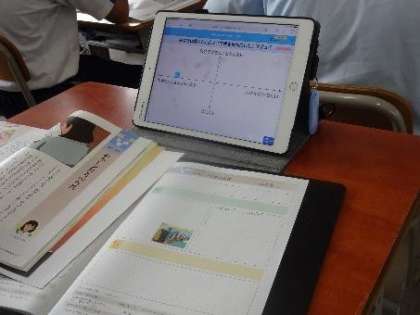 授業中の教室を回っていると、3年生の教室では道徳の授業で、学習用タブレットが使われていました。