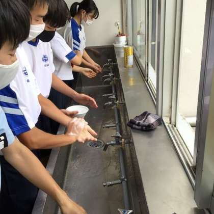 今日は、3年生の給食準備の様子を見に行きました。