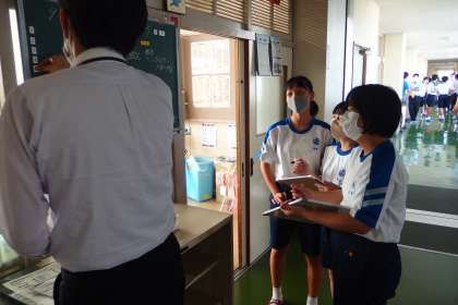 学年の連絡黒板に翌日の連絡を写しに来た3年生です。