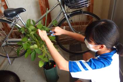 丹念に育てた枝豆を収穫しています。