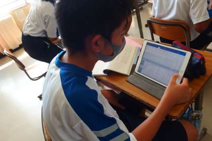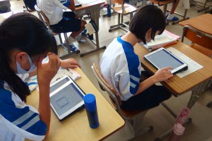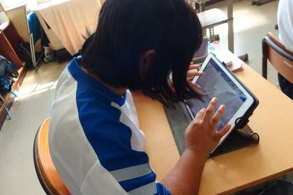 タブレット上に原稿用紙を広げて、縦書きで自作の文章を作っていきます。