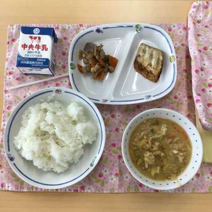 10月7日の献立は、ごはん、豆乳のバランスみそ汁、筑前煮、さばの塩焼き、牛乳でした。