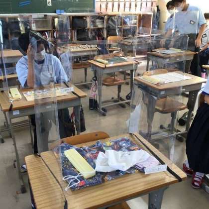 緊急事態宣言が解除され、感染防止への意識が薄らぐ心配の中、本校では飛沫防止のためのアクリルボードを全生徒分購入しました。