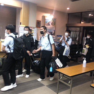 ホテルに入る前に検温を済ませ、ホテルの玄関で手指の消毒を行い、生徒はそれぞれの部屋に入りました。