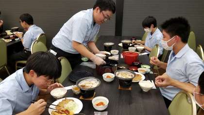 修学旅行1日目、黒部観光ホテルでの夕食です。