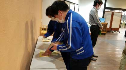朝食会場を出ていくときに、健康観察カードを提出しているところです。