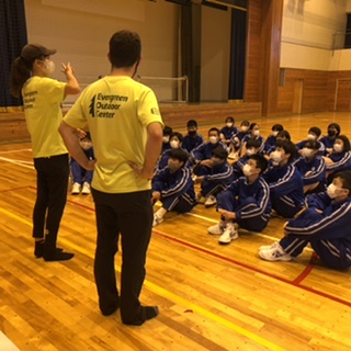 1組から3組は小谷村の体育館に移動して室内でのレクレーションを行っています。