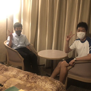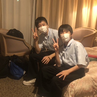 部屋に入り、ほっと一息の生徒たちの様子です。