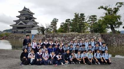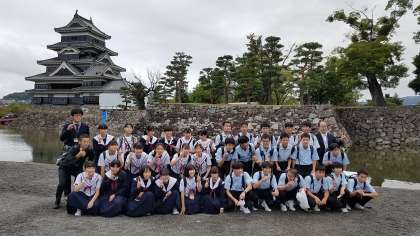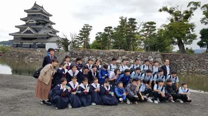 修学旅行2日目を振り返ってアップします。 3枚の写真は松本城でのクラス集合写真です。