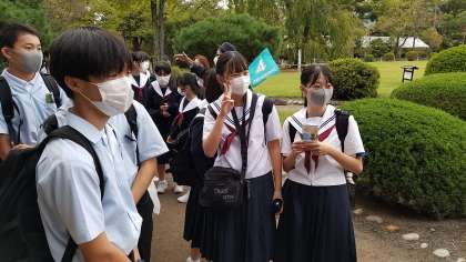 修学旅行2日目を振り返ってアップします。 松本城の天守見学を待っているところです。