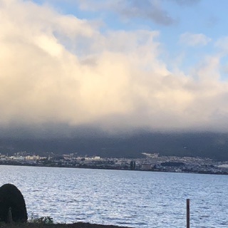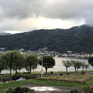 宿泊したホテルと朝の諏訪湖の様子です。