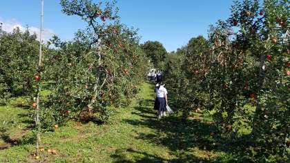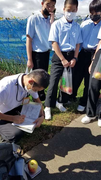 りんご狩りの後、どの班のりんごがチャンピオンか「重さ選手権」を開催しました。