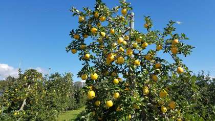 下の写真は「シナノゴールド」で、生徒のみなさんがりんご狩りしたのとは違う種類です。