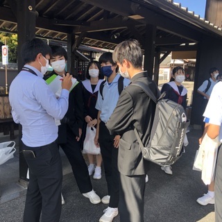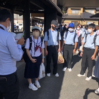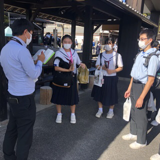 馬籠宿でのグループ行動を終え、本部でチェックを受けて、バスに乗り込みます。