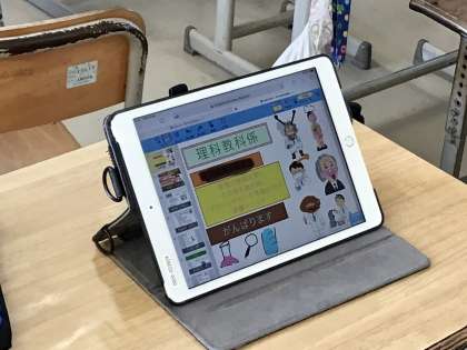 1週間の最後、金曜日の午後は、学級の時間、総合的な学習の時間です。掲示物を作成したり、SDGsについて調べたことを発表したりとクラス思い思いの活動が行われています。2年4組では学級の掲示物が作成されていました。これまでは紙手書きで作るのが当たり前でしたが、現在は…タブレットで作成しています!これもとても大きな変化です。