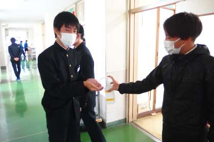 今日は人手不足のようで、担任の先生が消毒係でした。