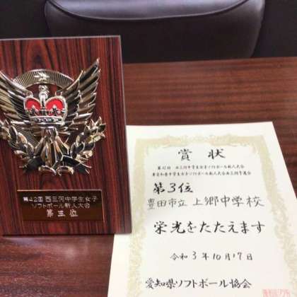 10月16日、17日の2日間で行われた西三河中学生女子ソフトボール新人大会で、本校ソフトボール部がベスト4に勝ち進み、県大会への出場権を手にしました。
