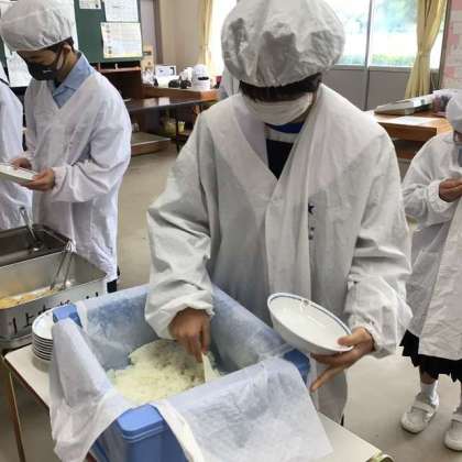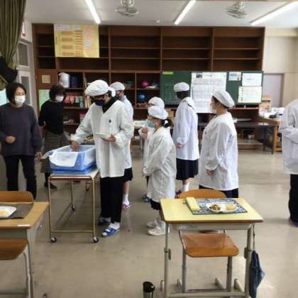順番を守って、ちゃんと並びます 〜今日の給食 その1〜