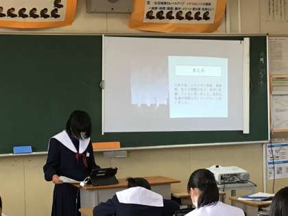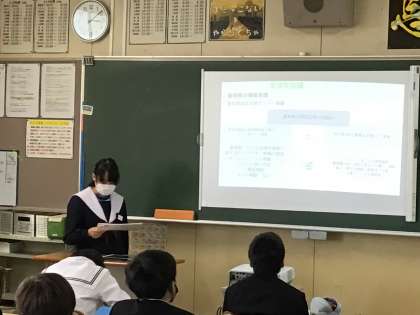 一年生でも、SDジーズの発表会が行われています。クラス代表が決められ、学年発表会で発表します。タブレット端末をうまく活用し、詳しく調べて自分の考えも述べられていました。