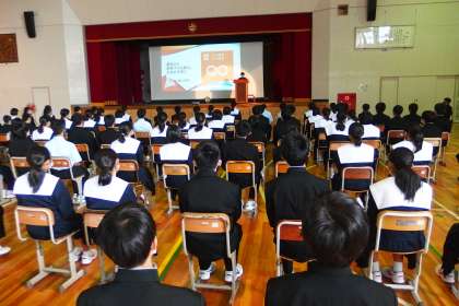 1年生の総合的な学習で学習してきたことを「SDGs学年発表会」として披露しました。