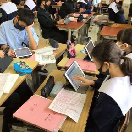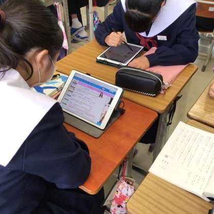 自分の考えをタブレット内のノートにまとめて、グループワークに取り組みます。