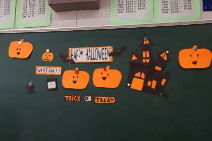 特別支援学級の生徒のみなさんが作成したハロウィーンの飾りつけです。