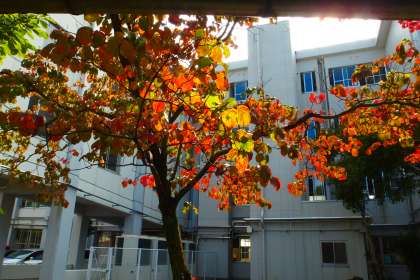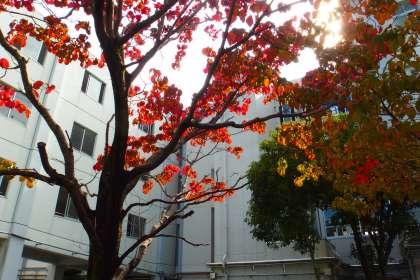 紅葉、黄葉して散り急ぐハナミズキです。