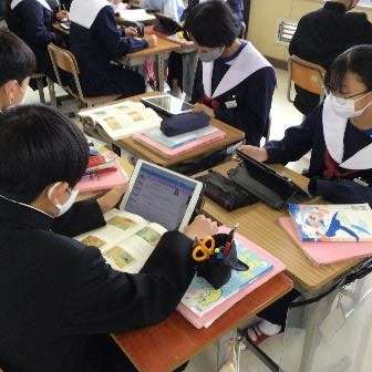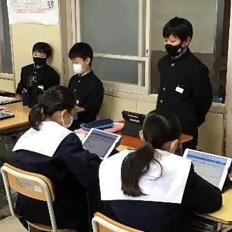 学習用タブレットを積極的に活用するいつもの授業を見ていただきました。