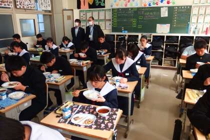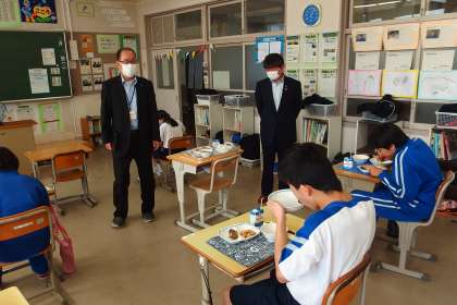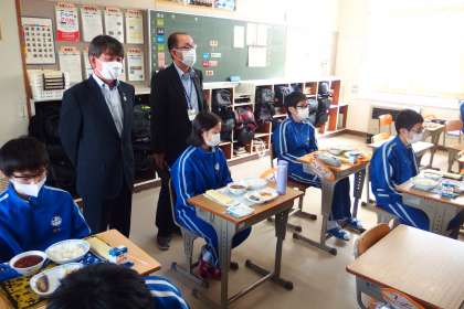教育長が来校した時間が、ちょうど給食の時間でした。