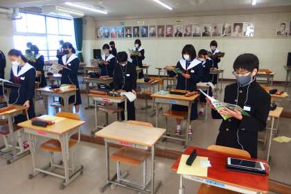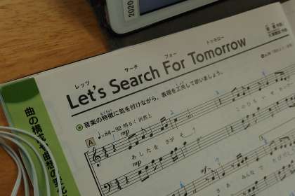 1年生の音楽の授業で歌唱練習をしているところです。